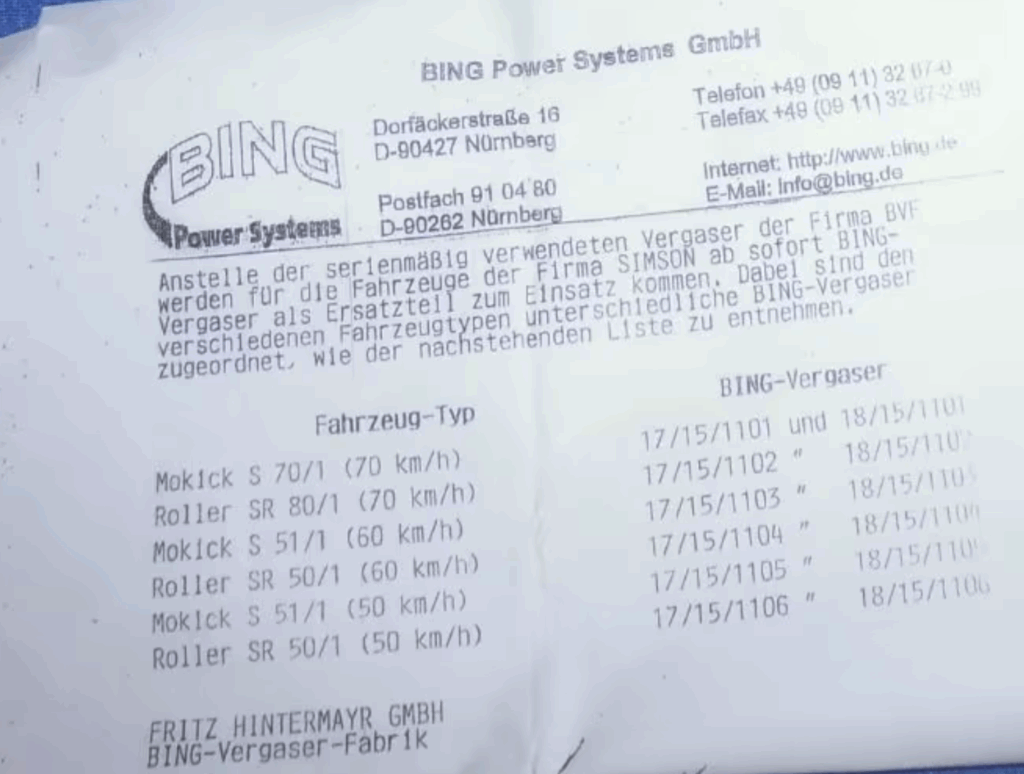 | Fahrzeug-Typ | BING-Vergaser |